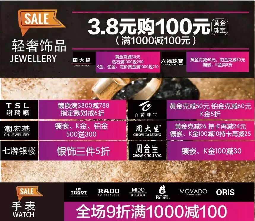 (不可与嘉人卡、3.8元购100元化妆品/黄金珠宝券同时使用)